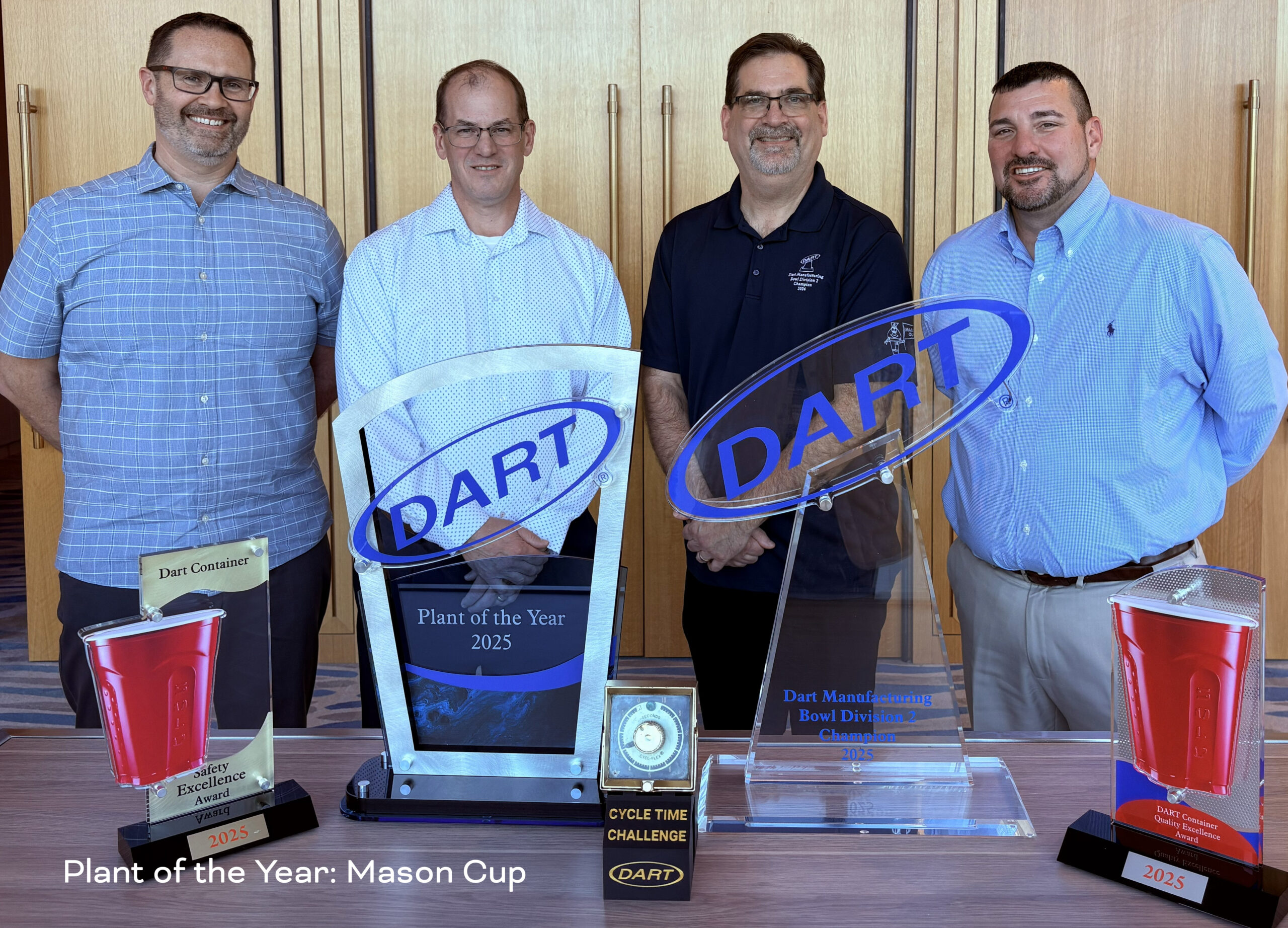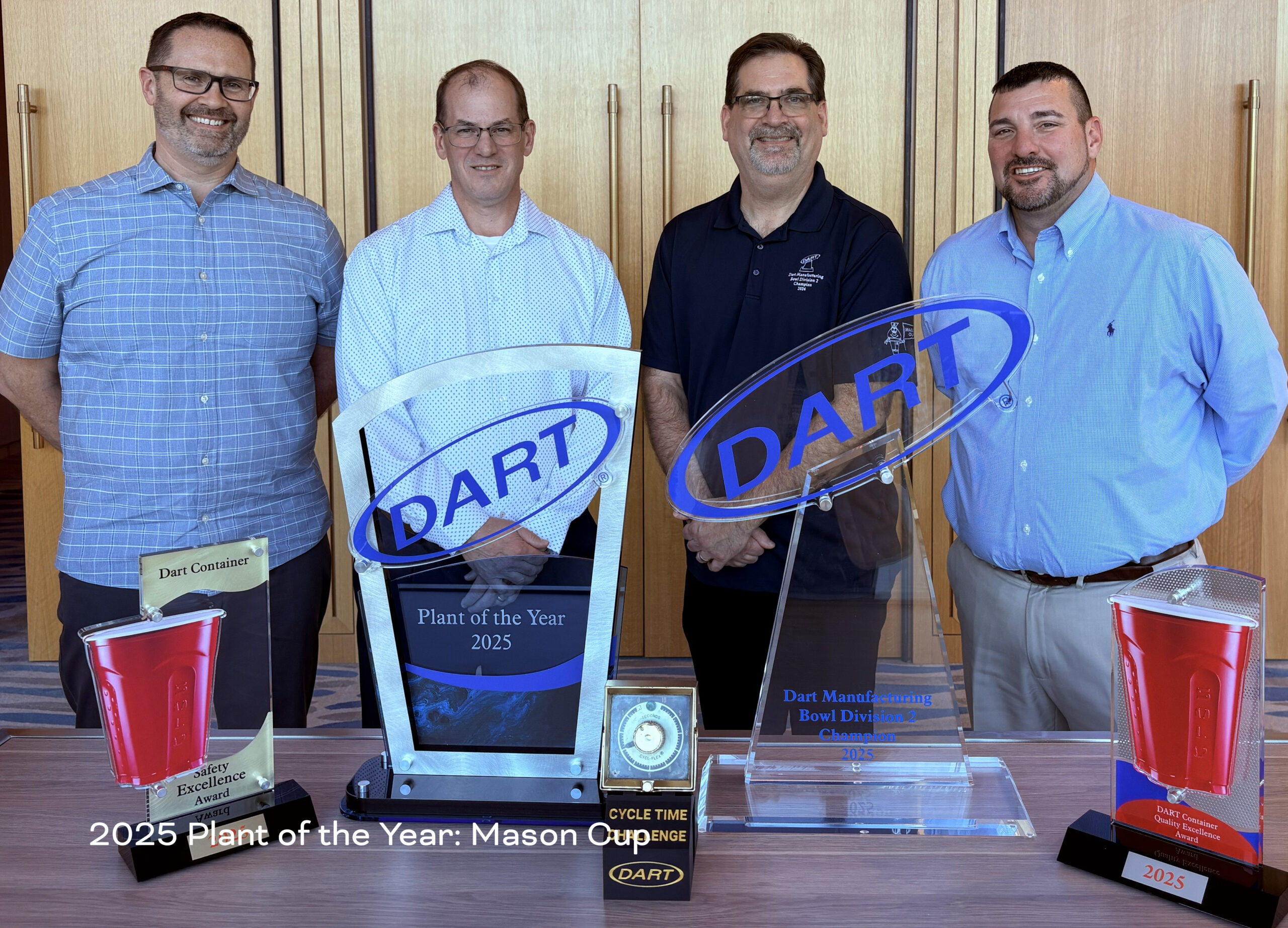 The awards goes to the Dart location that exceeds expectations for safety, quality, production adherence, financial performance and other factors. Kudos to Plant Manager Marc Landry and the Mason Cup team.