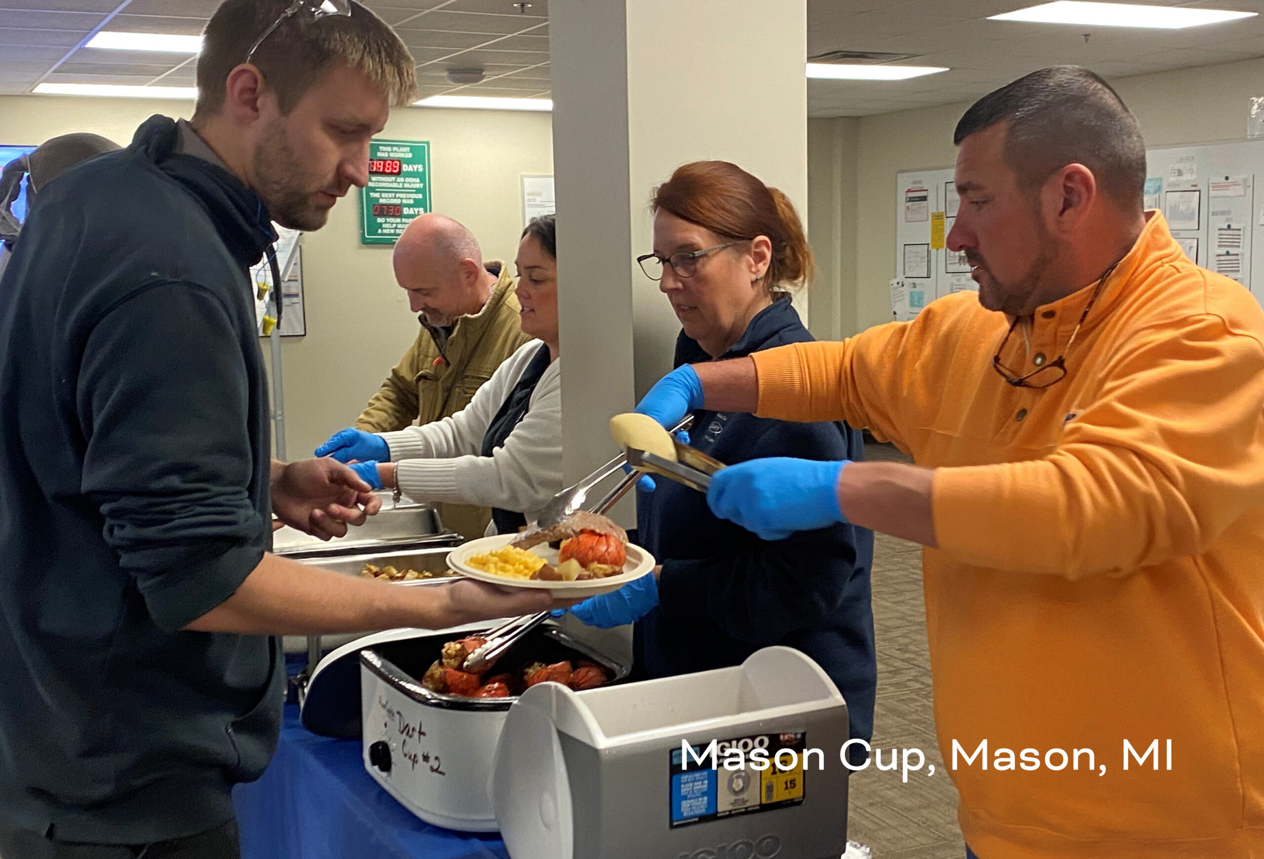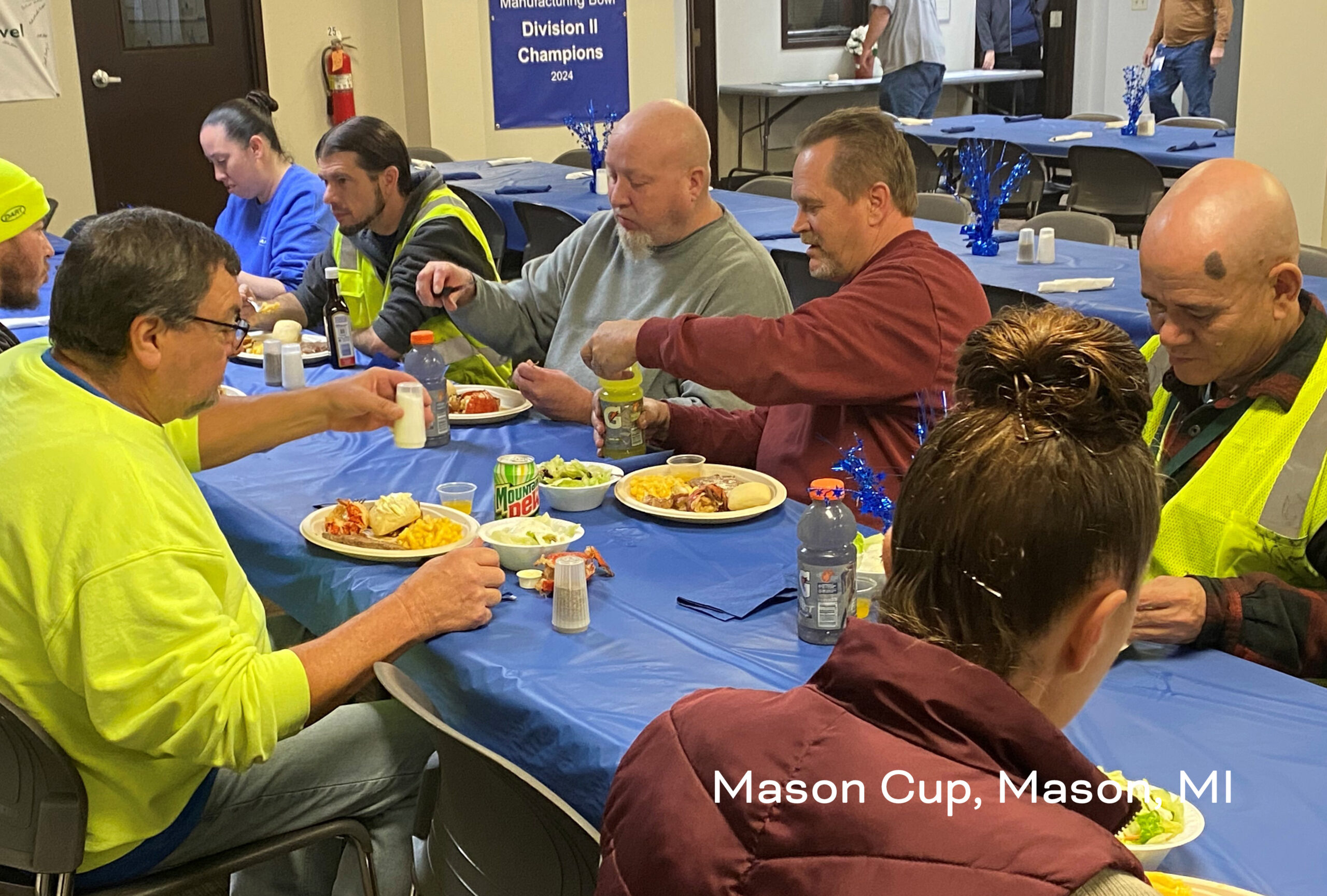 Employees dined in style with a steak-and-lobster meal. The Mason team – led by Plant Manager Marc Landry and EHS Manager Paula Espinoza – has not logged a recordable safety incident since September 22, 2021.